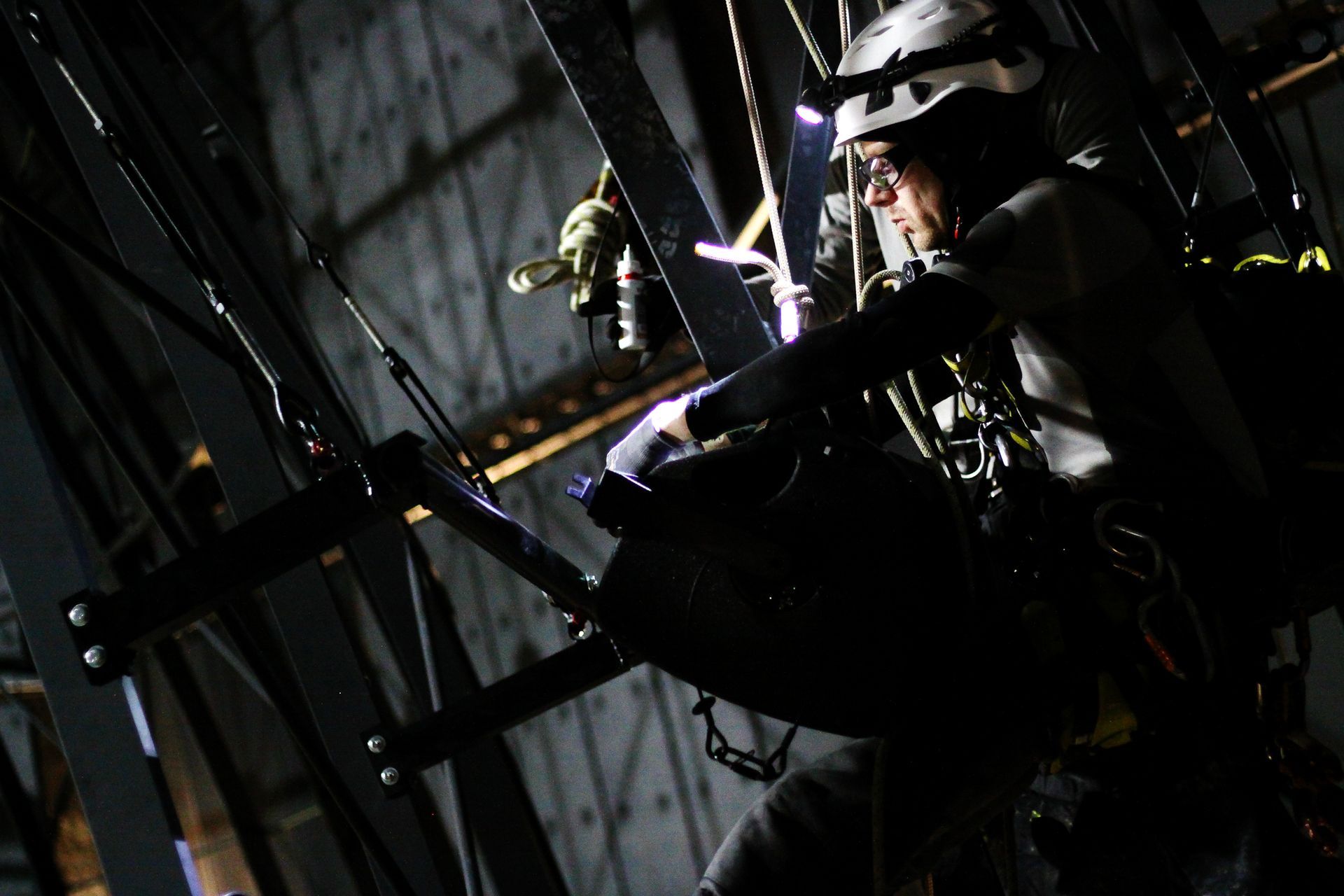 Das Arbeiten mit Seilen und anderen Riggingtechniken wird durch unsere geschulten Spezialisten stetig und sicher in großen Höhen umgesetzt. So können komplexe Kunstwerke oft ohne den Einsatz von schwerem Gerät oder Maschinen an schwer zugänglichen Orten installiert werden.