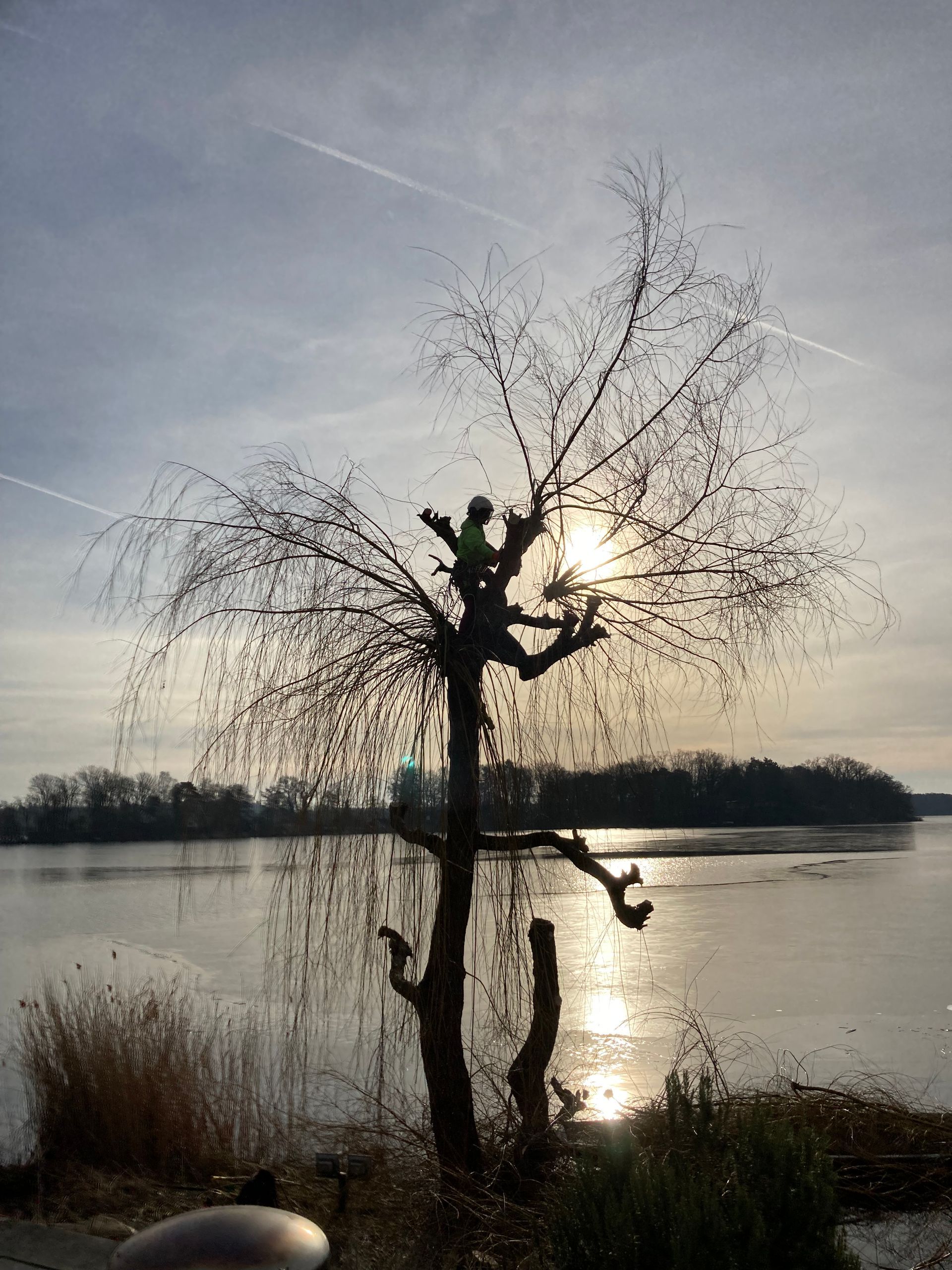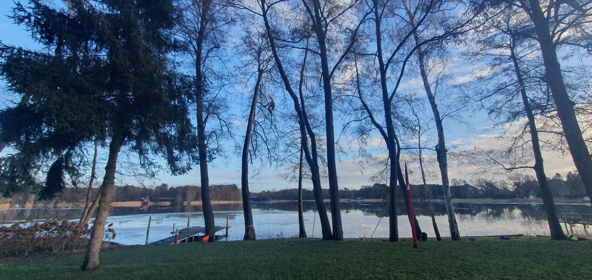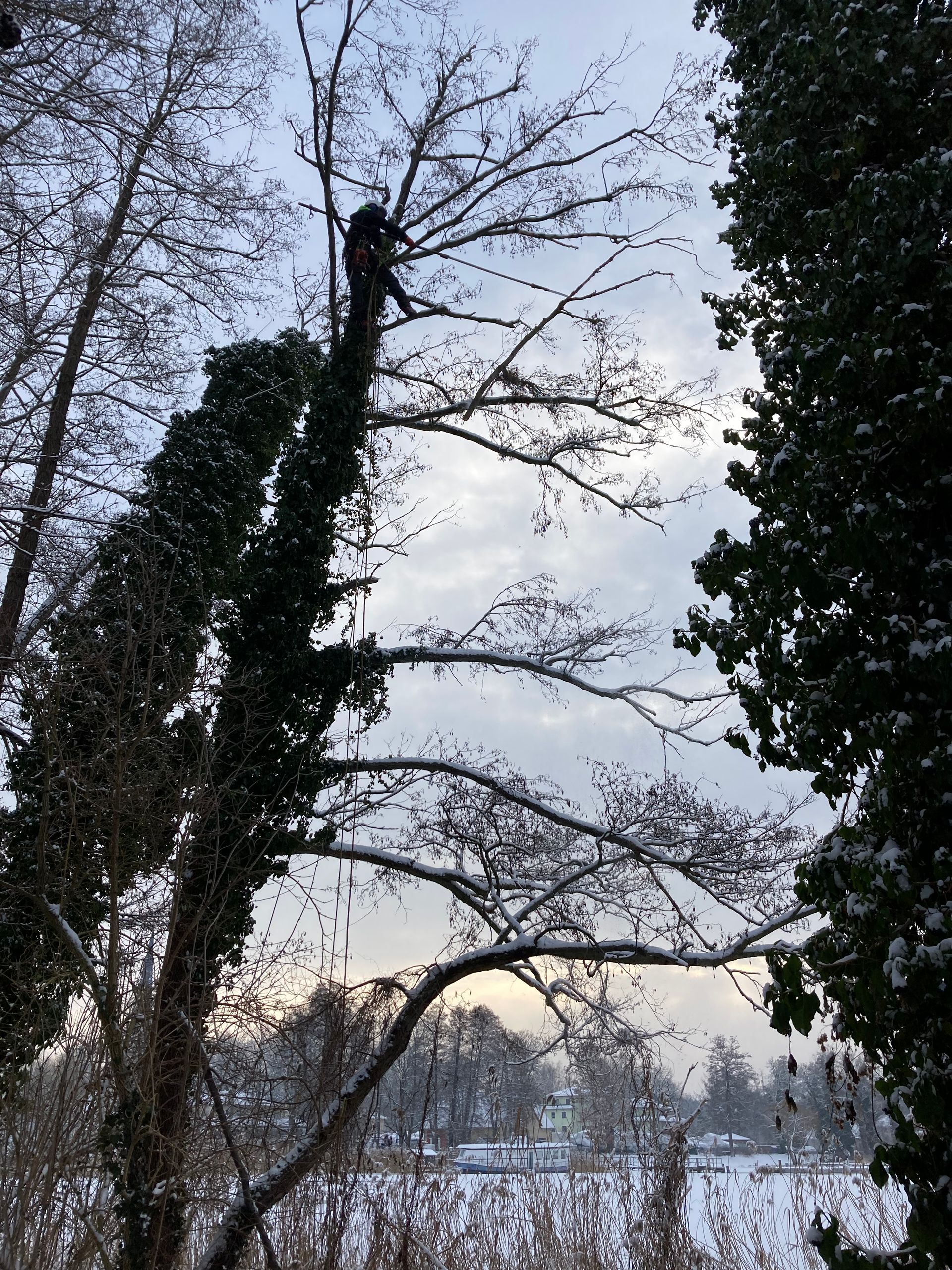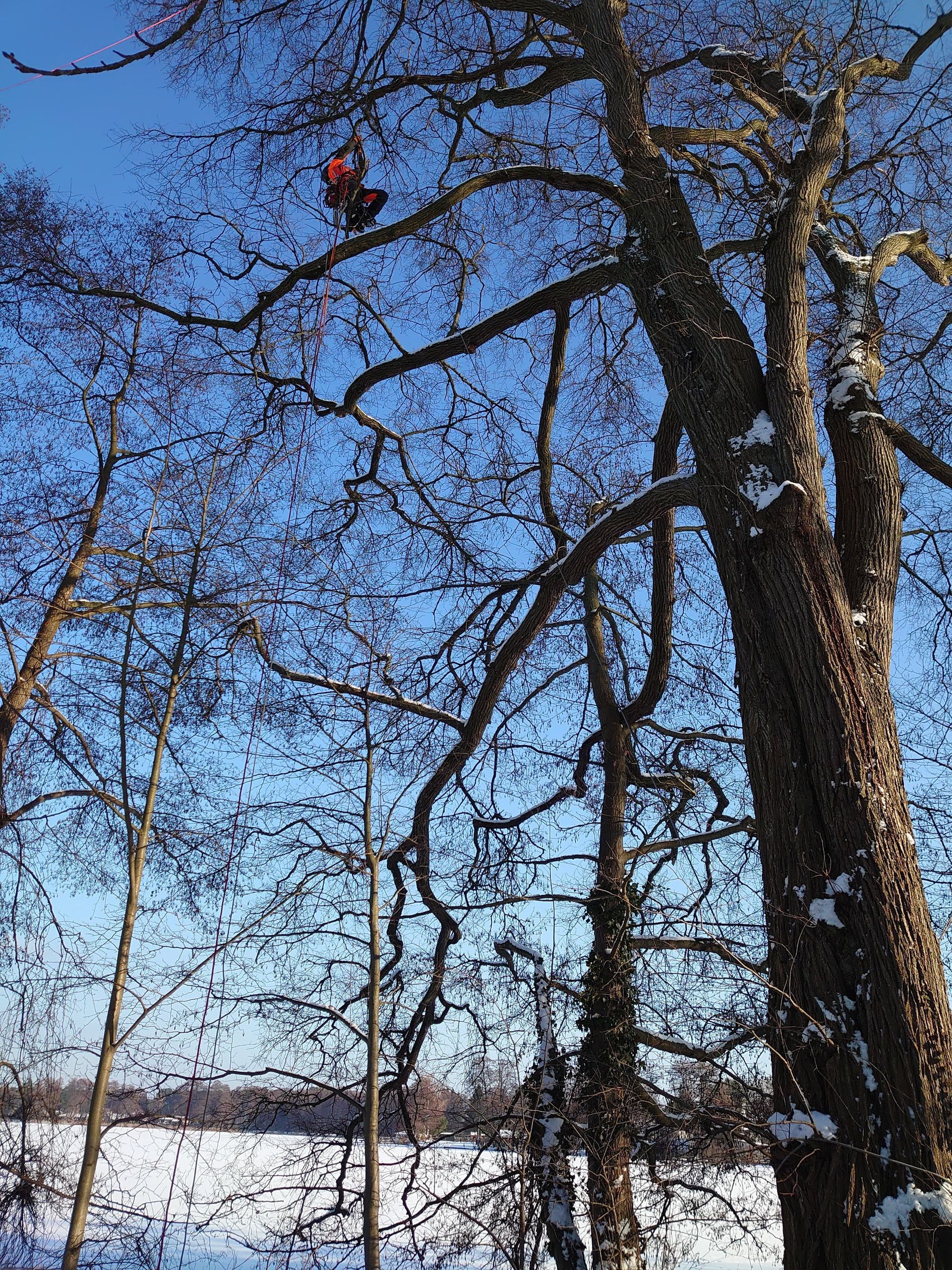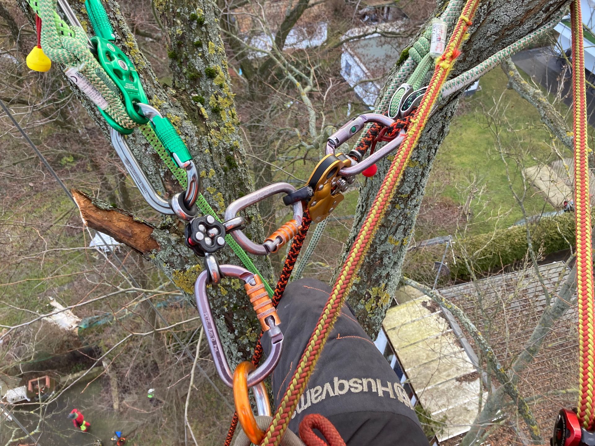 Die Baumfällung, die Beseitigung und Reparatur von Sturmschäden ist eine anspruchsvolle Aufgabe, die häufig unter schweren Bedingungen durchgeführt werden muss. Besonders schwierig wird es, wenn der Baum sich in einer ungünstigen Lage befindet und nicht einfach umgeschnitten werden kann. In solchen Fällen ist der Einsatz der Seilklettertechnik unverzichtbar, um den Baum kontrolliert und sicher zu fällen.